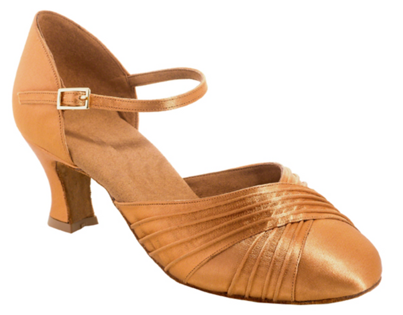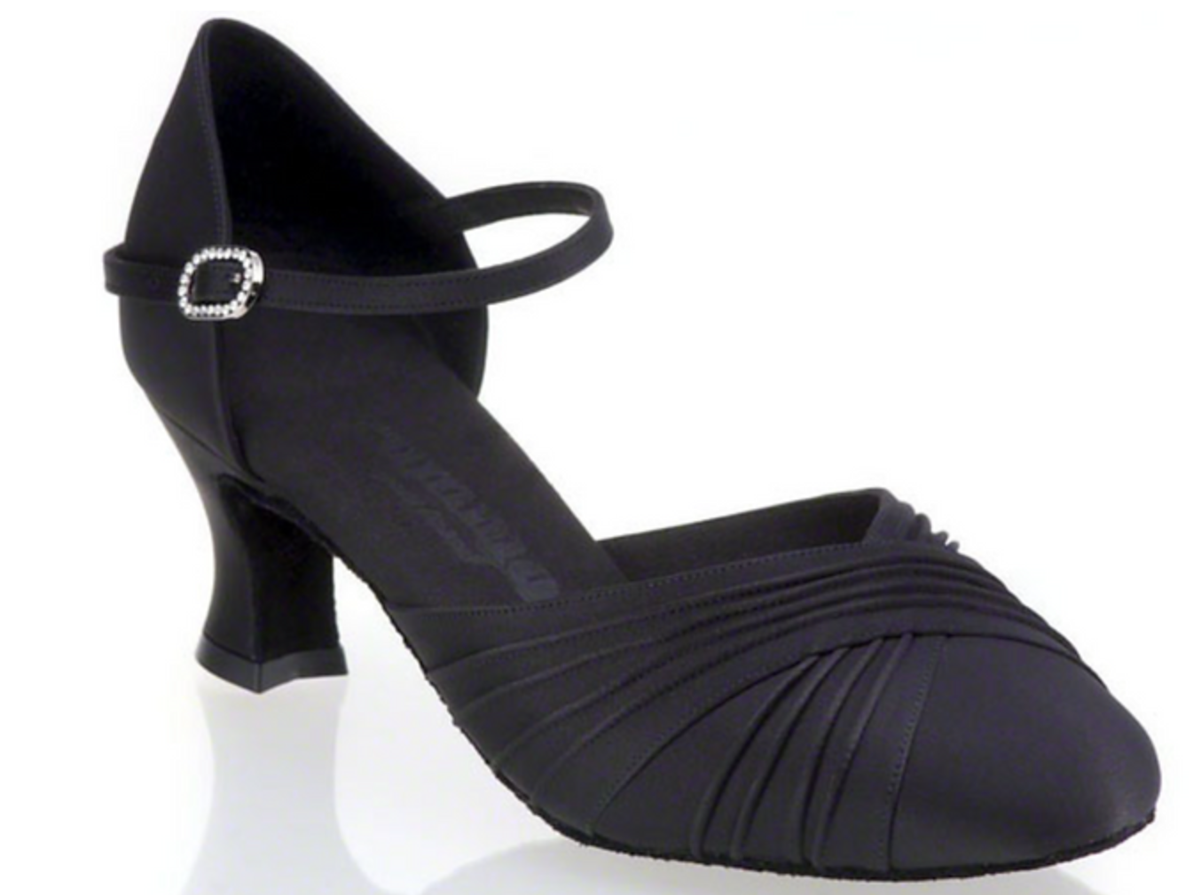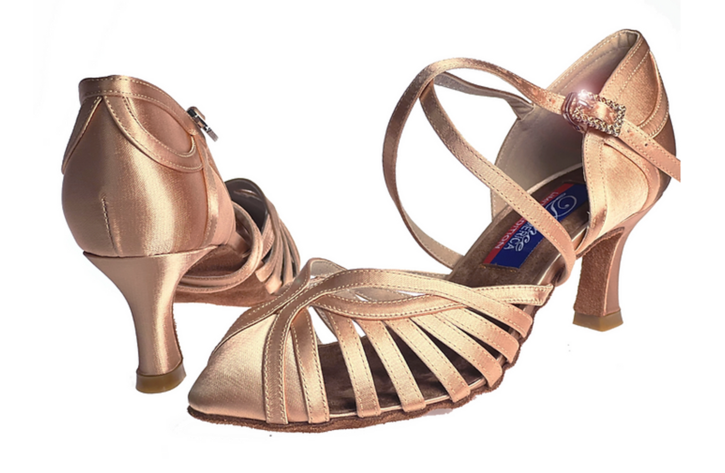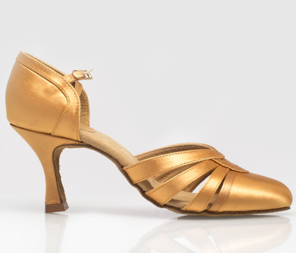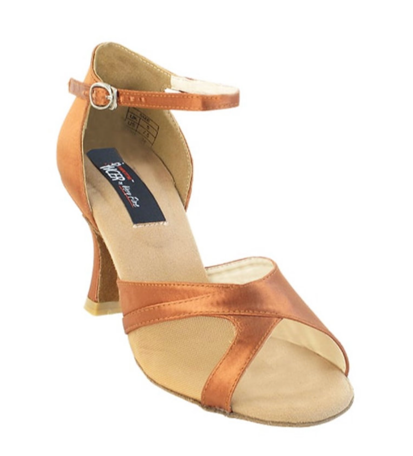 Ballroom dance shoes are flexible, allowing the shoe to follow the foot's movements. A good shoe not only allows a dancer to slide but also highlights footwork.