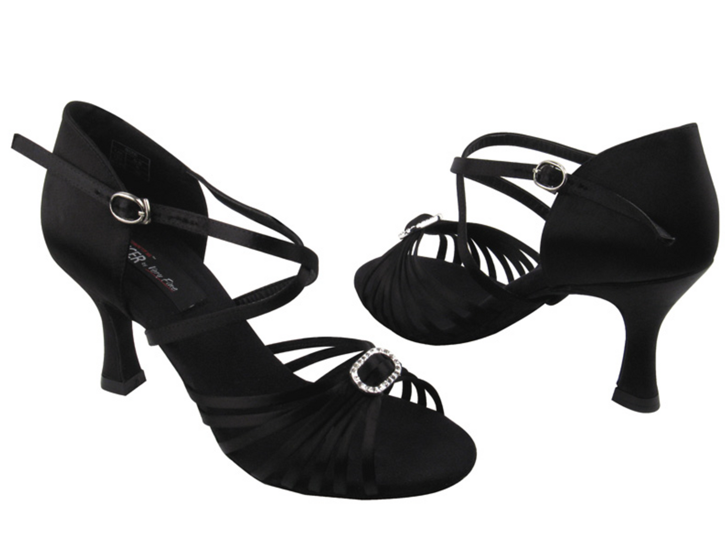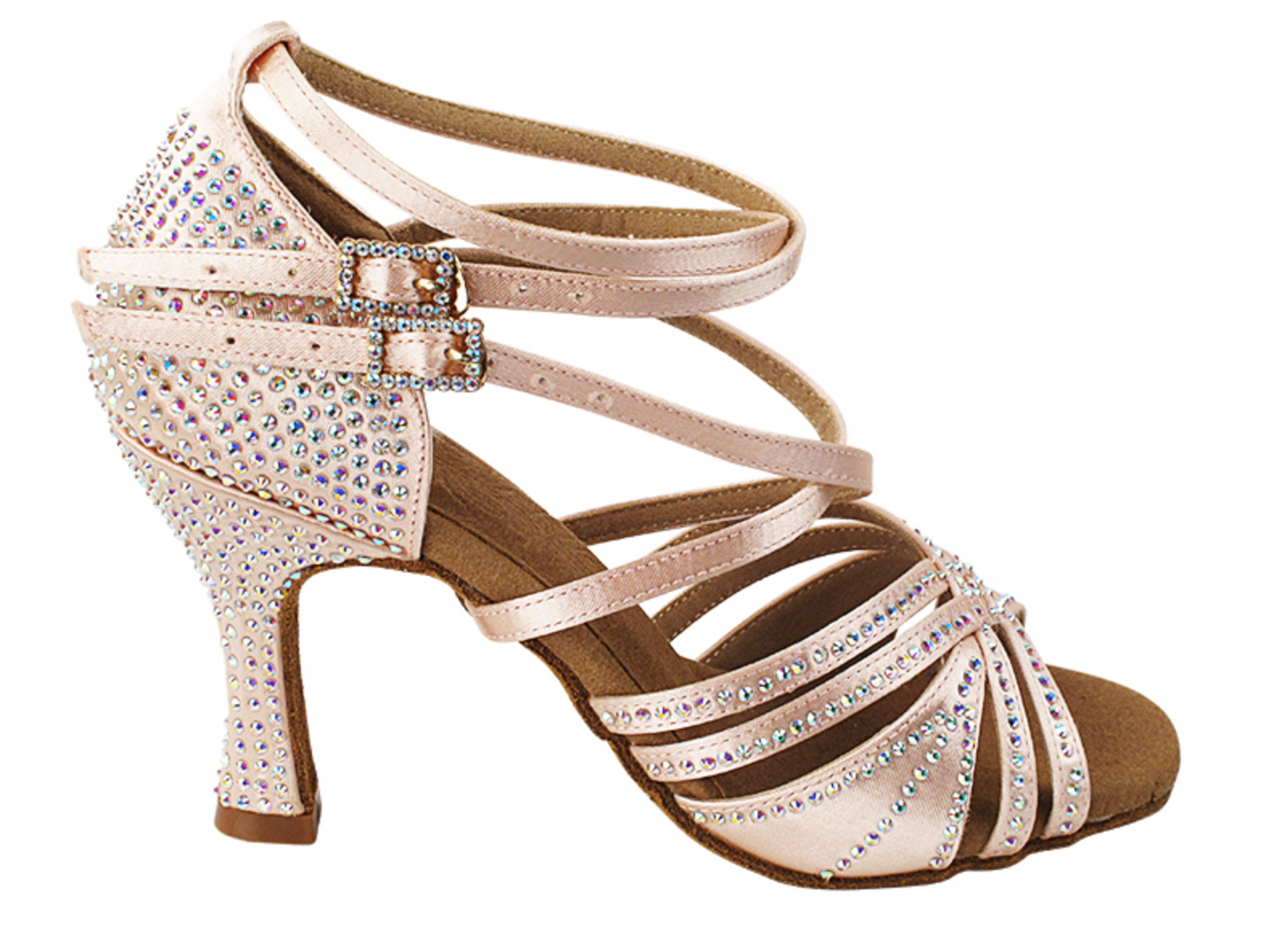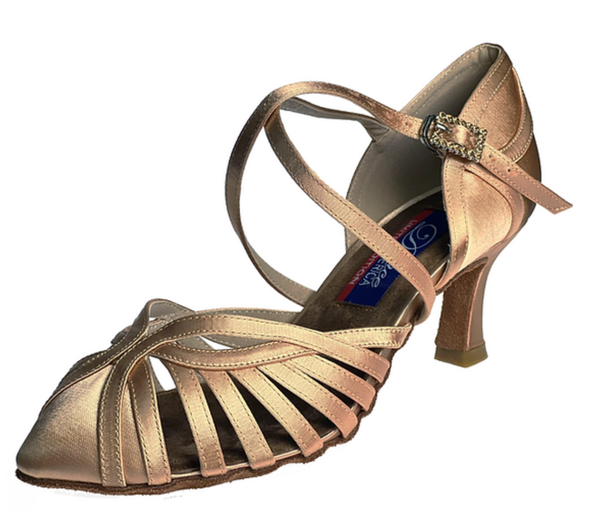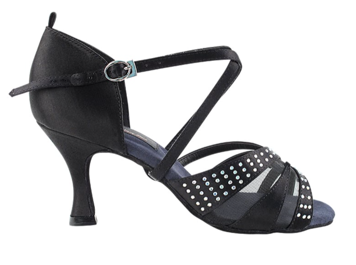 Ballroom dance shoes are flexible, allowing the shoe to follow the foot's movements. A good shoe not only allows a dancer to slide but also highlights footwork.