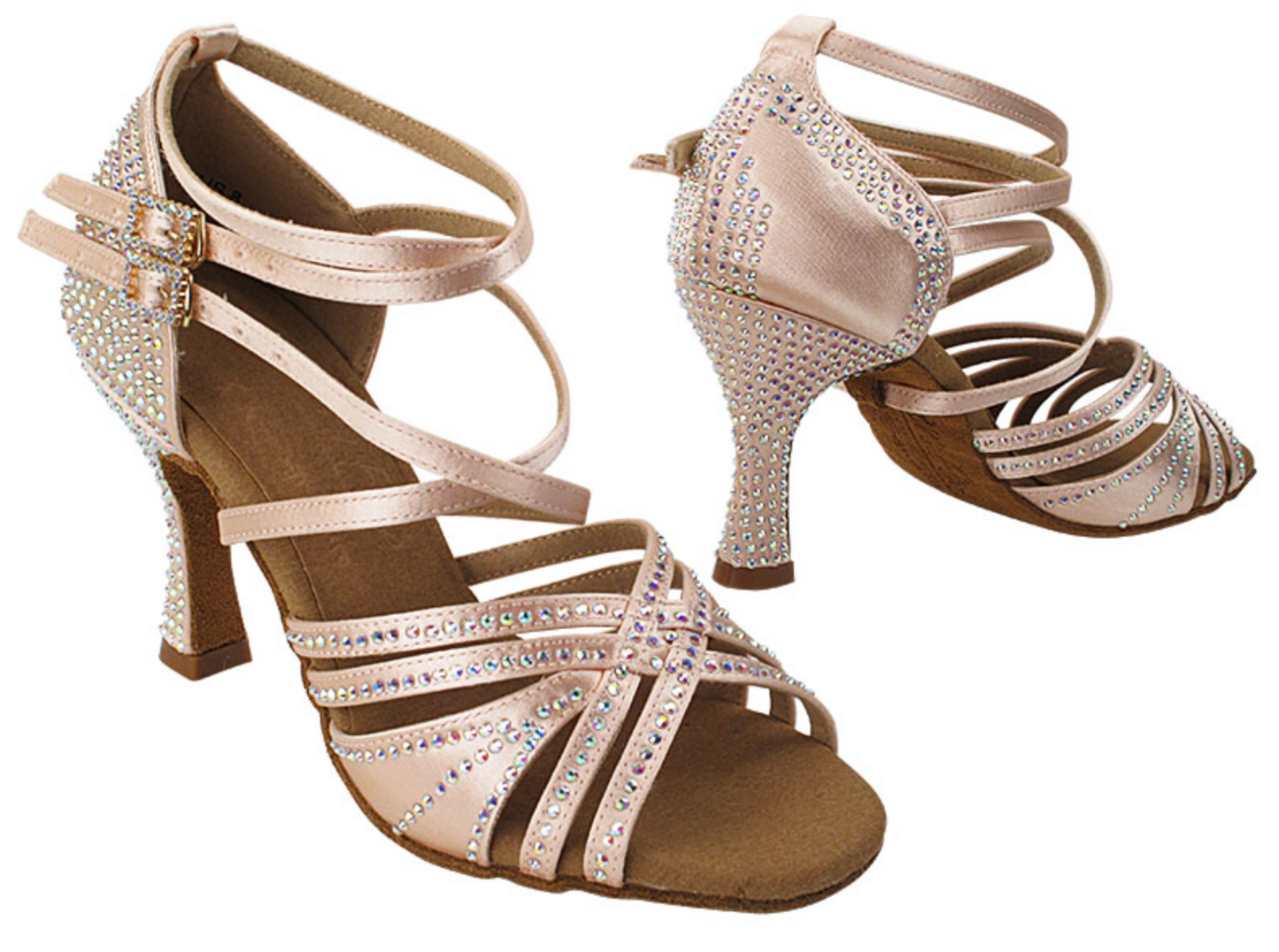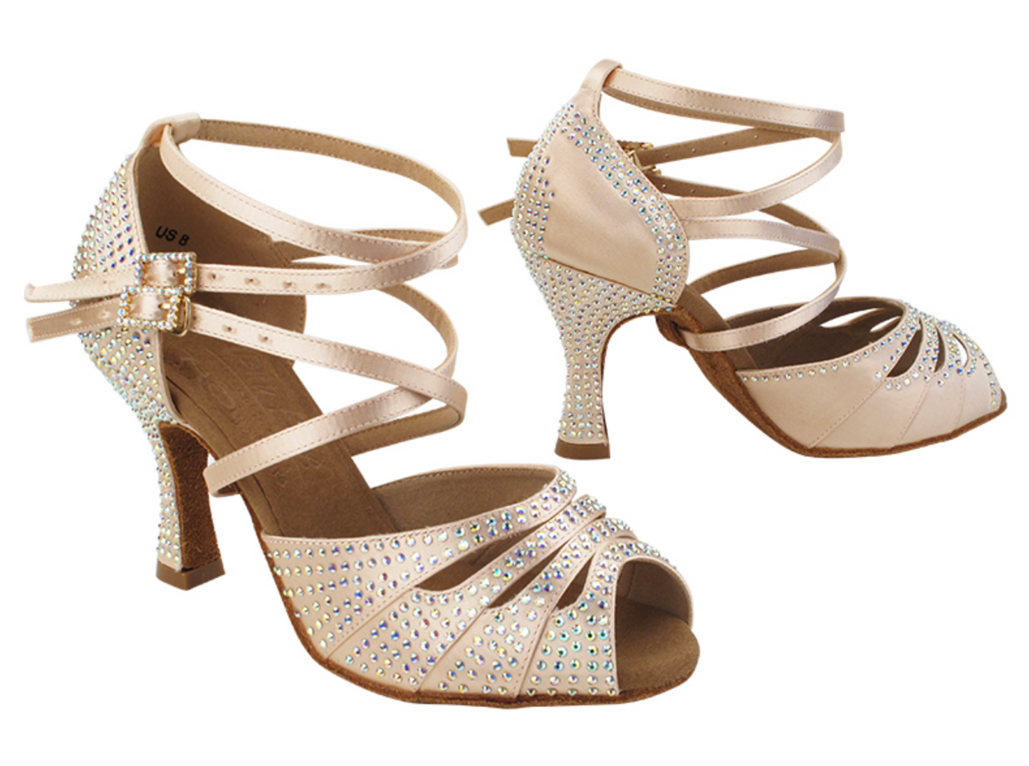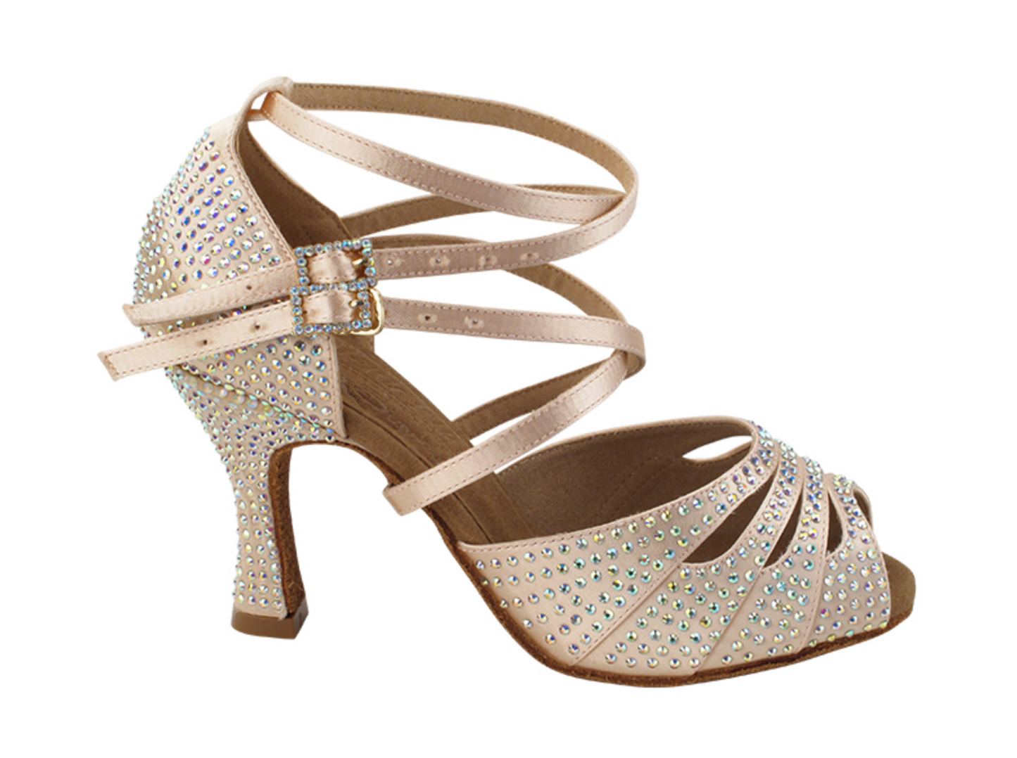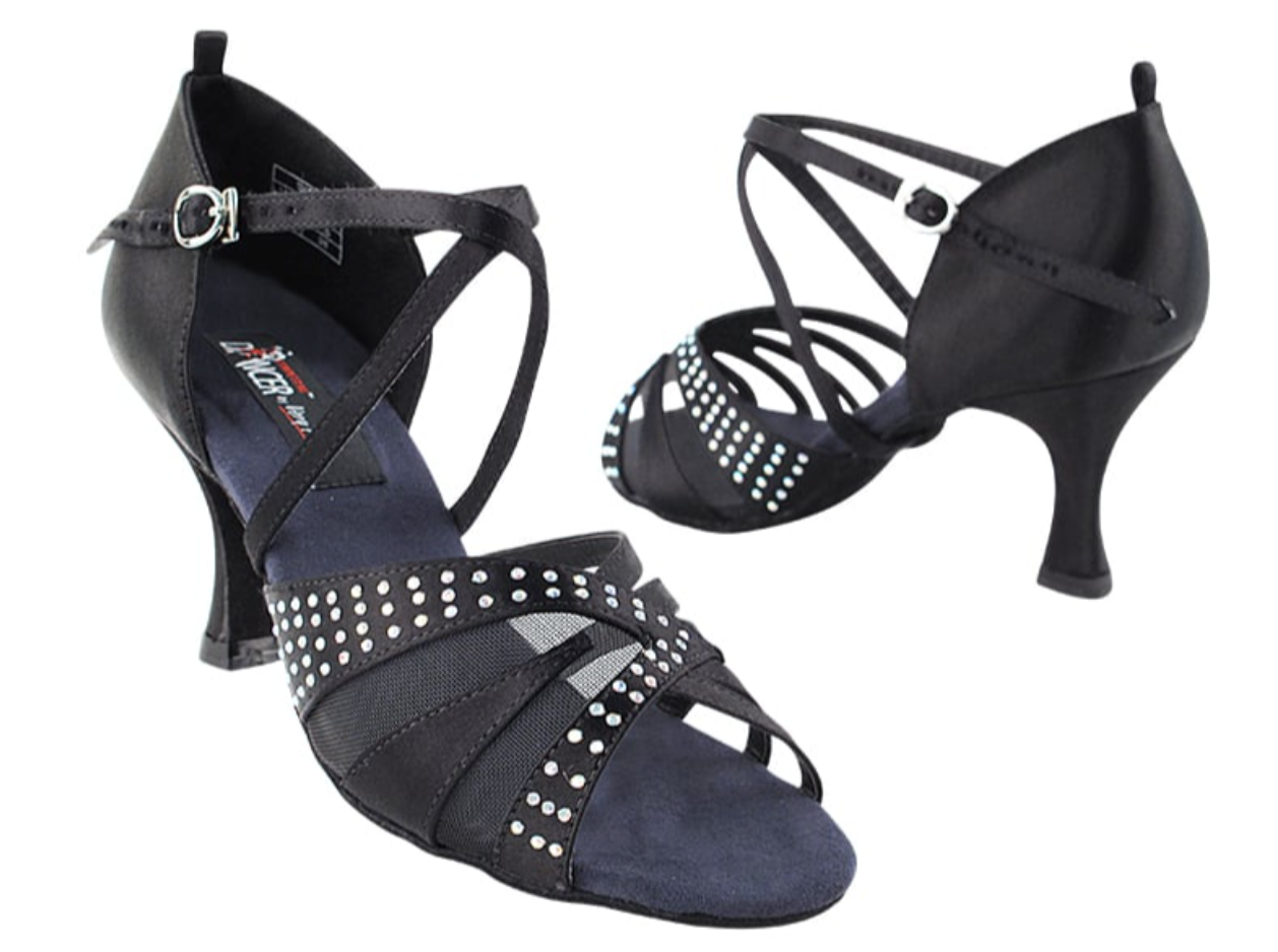 Ballroom dance shoes are flexible, allowing the shoe to follow the foot's movements. A good shoe not only allows a dancer to slide but also highlights footwork.