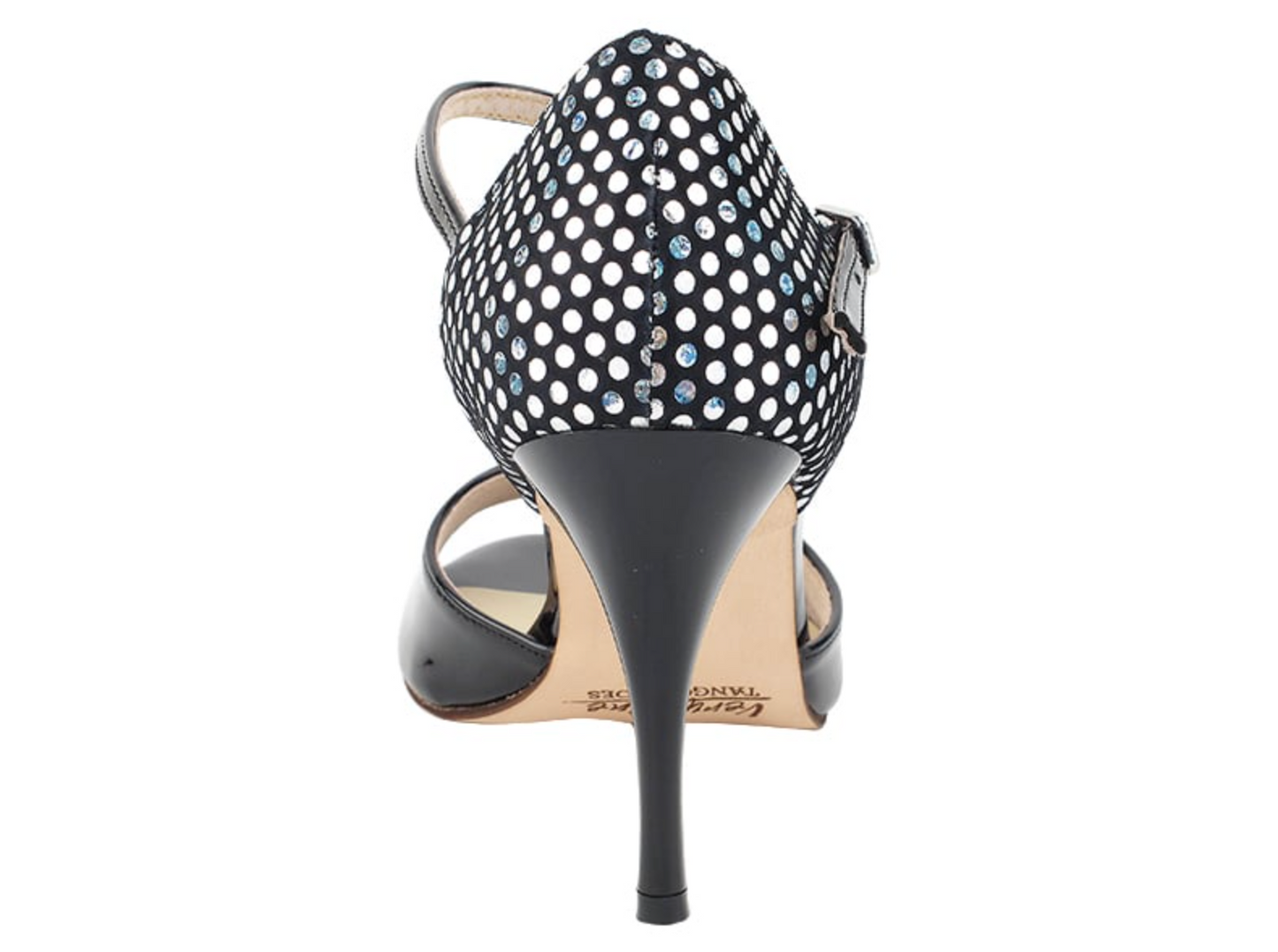 Female tango shoes need to be slim but strong. Sole at the ball of the foot has to be smooth (leather or suede) so that dancer can perform pivoting, while the arch (also called shank) that connects the heel and the fingers need to be very stiff and flexible in the point of interaction.