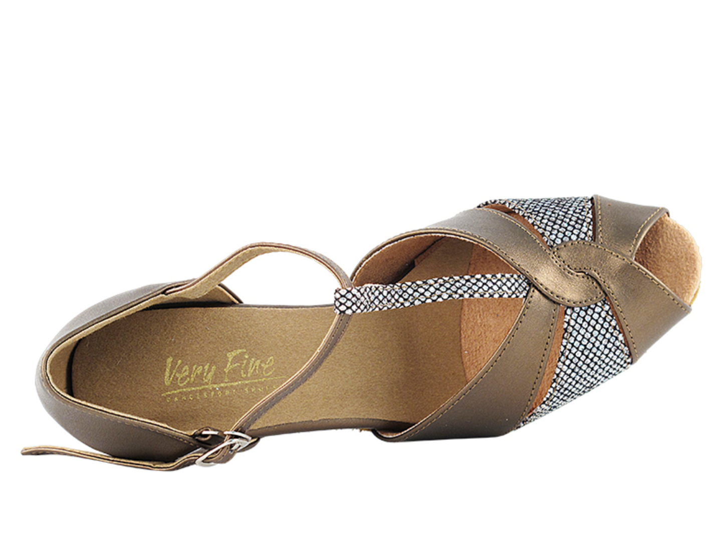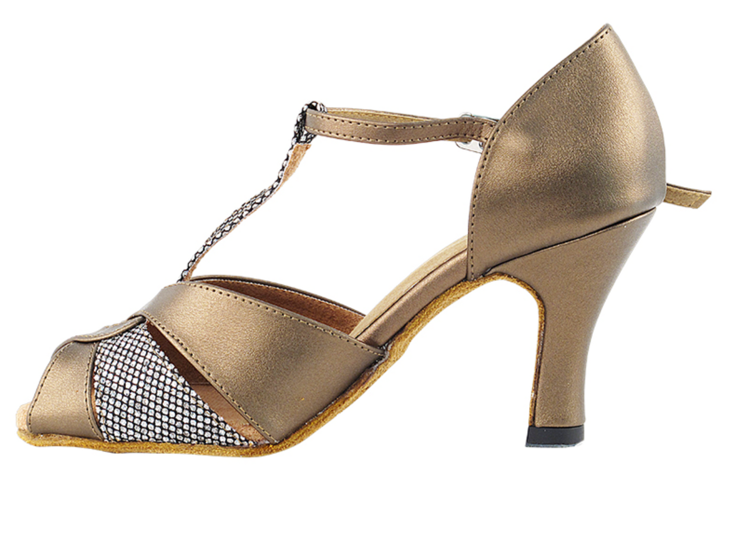 Women's American Rhythm, Latin Copper Leather & Black Sparklenet Shoes