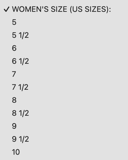 Review sizing recommendations for each specific product. Specify size during the checkout.