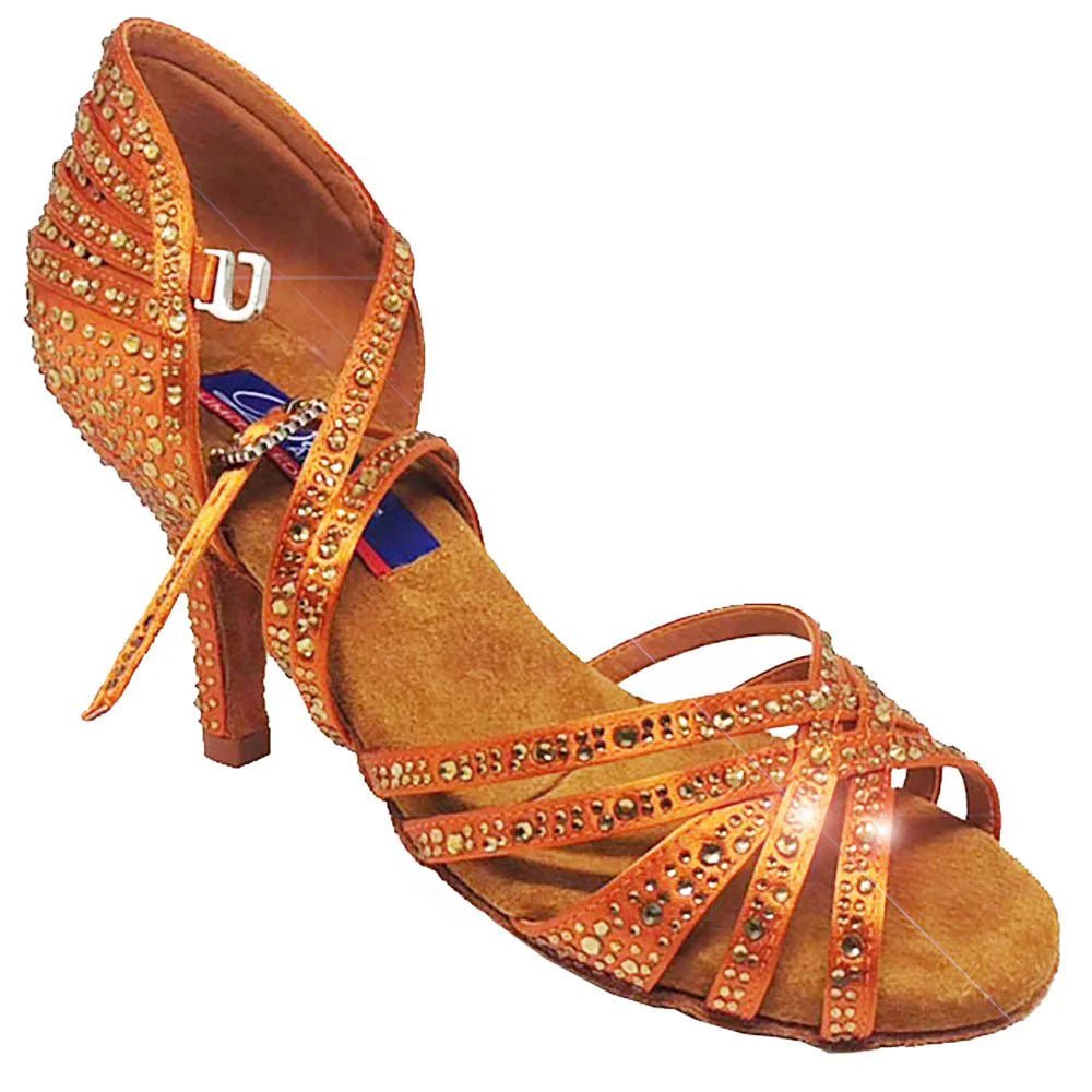 Experience ultimate luxury with Vegas Tan Satin, featuring rhinestones that perfectly match the color of the shoe. The wider strap and 6mm memory foam ensure unbeatable comfort and flexibility, while the 2.25" & 2.75" slim heel elongates your legs for a perfect fit. Elevate your dancing with Vegas.