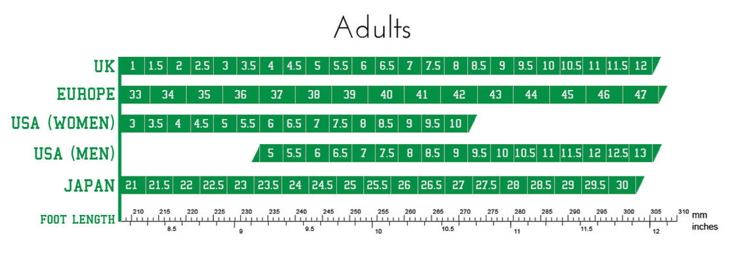 British Sizing: please subtract 1 size from American size (this is approximate)