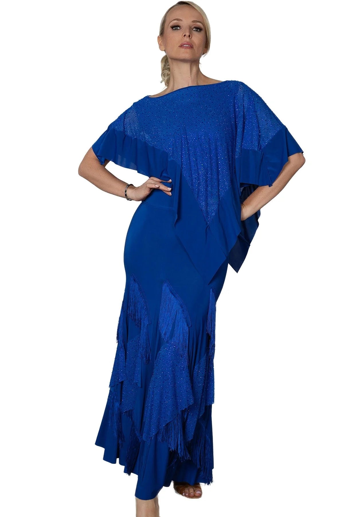 Ballroom, Latin, Smooth Long Fringe and Rhinestone Gypsy Skirt for Women