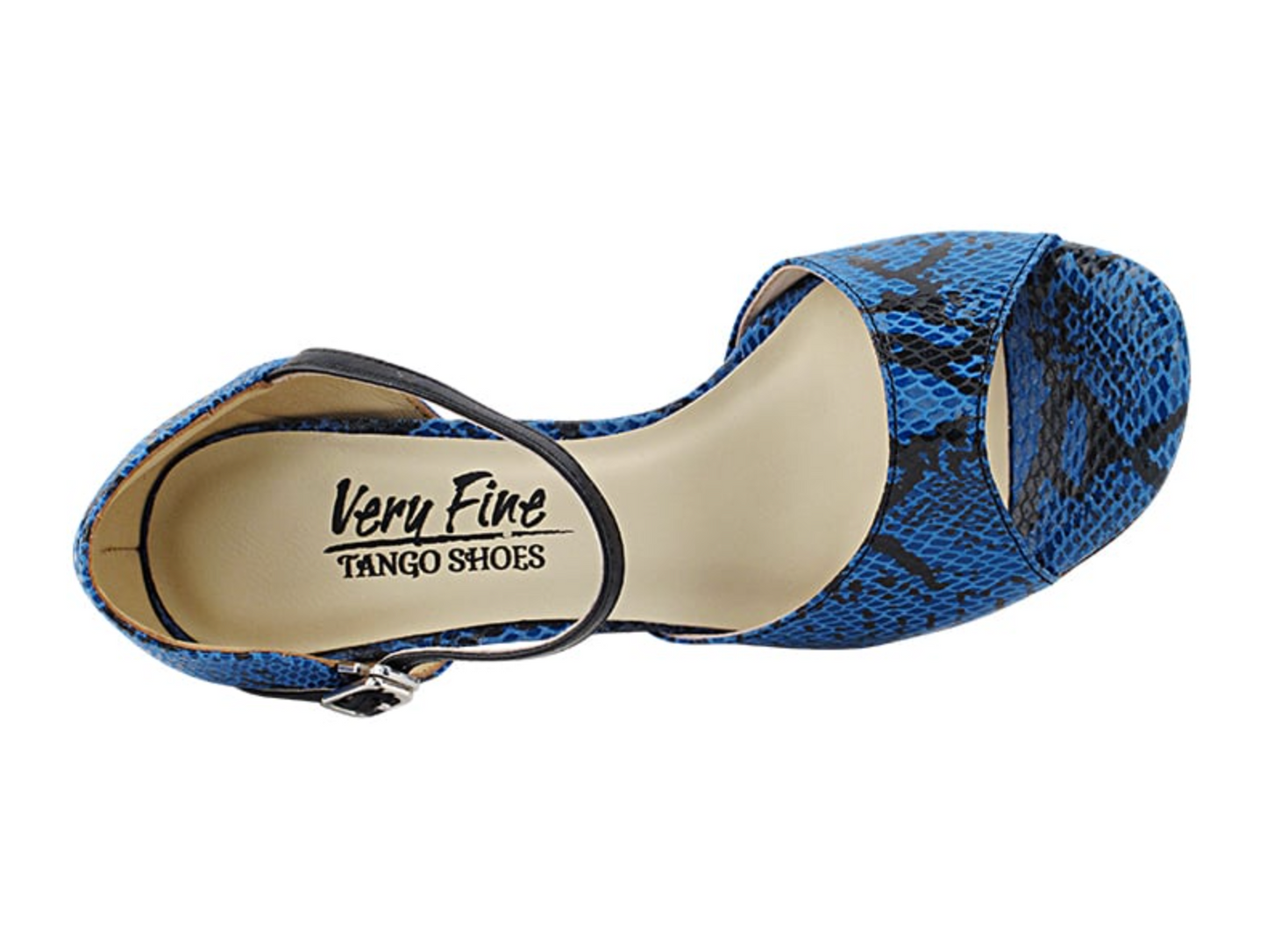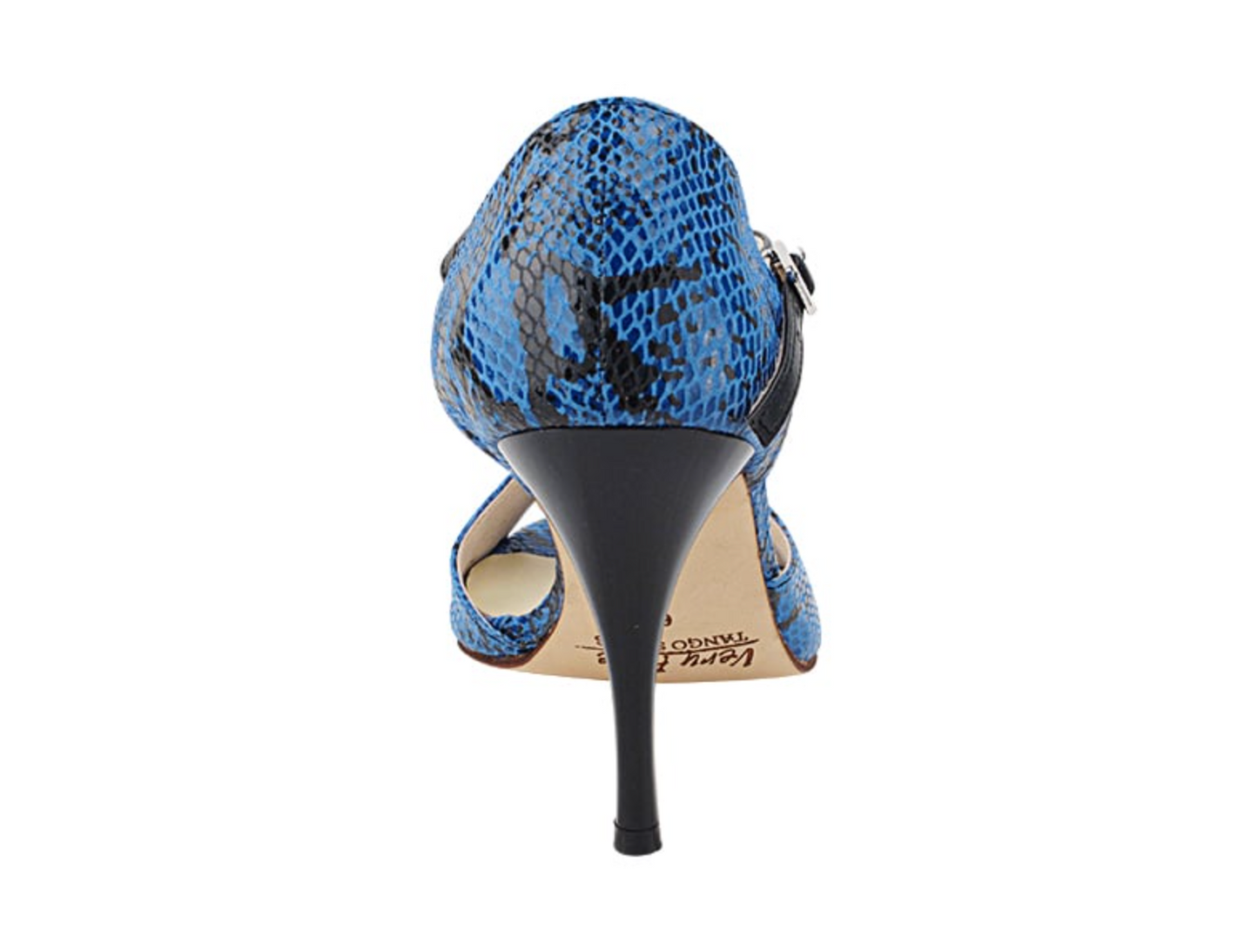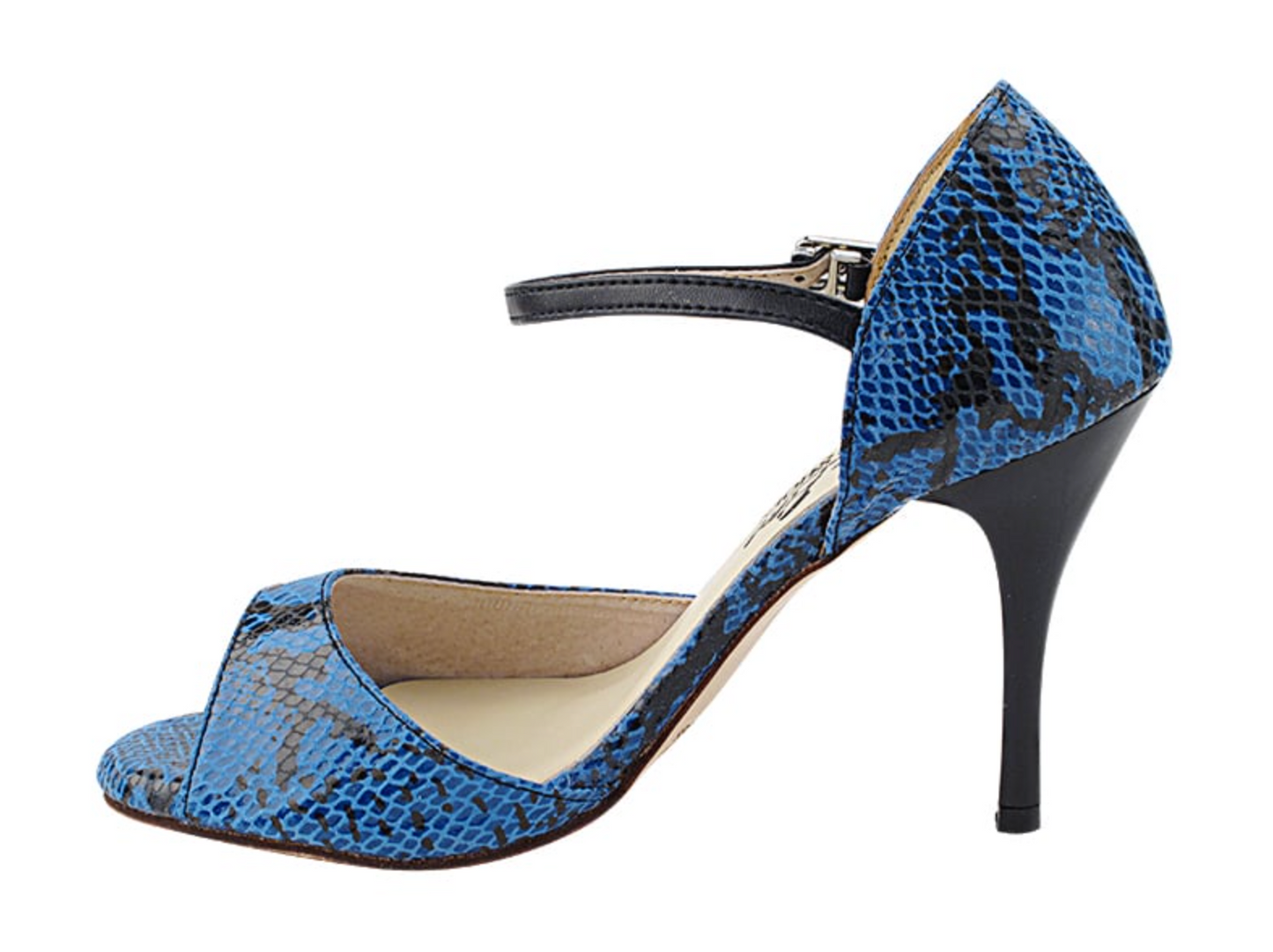 Argentine Tango Dance Shoes for Women Blue & Black Snake