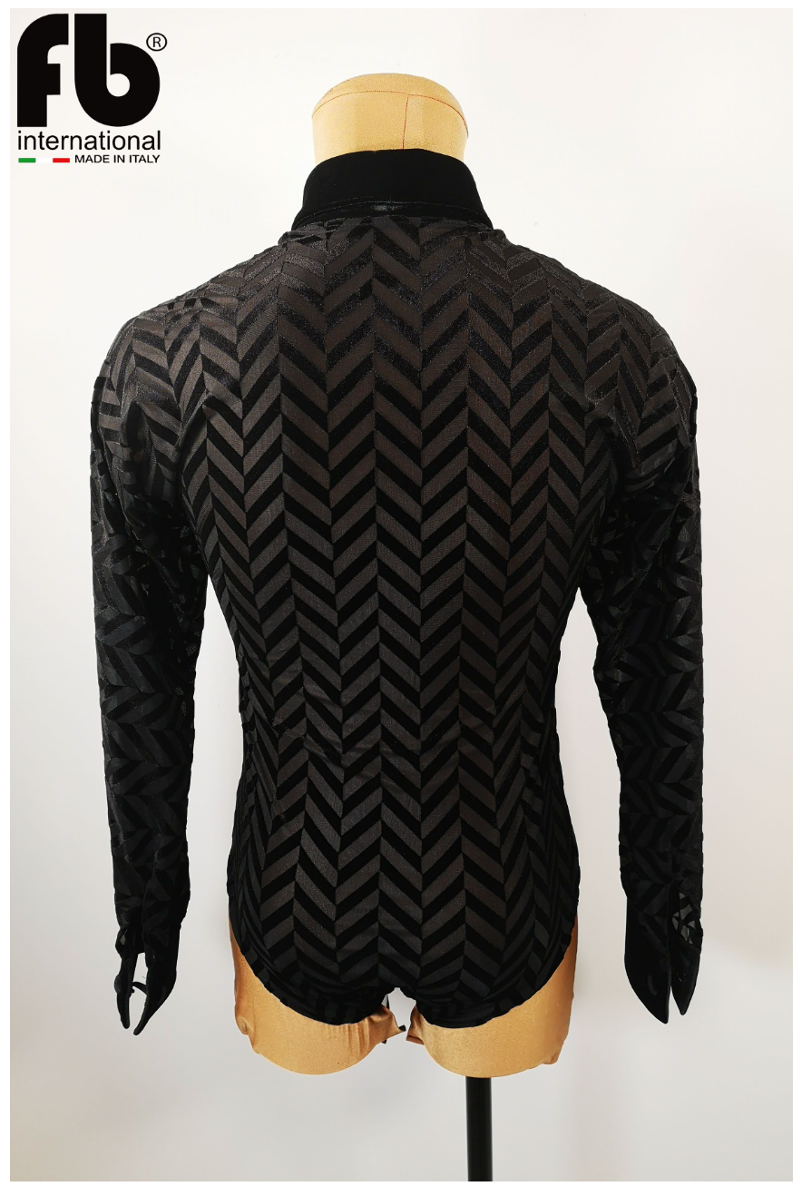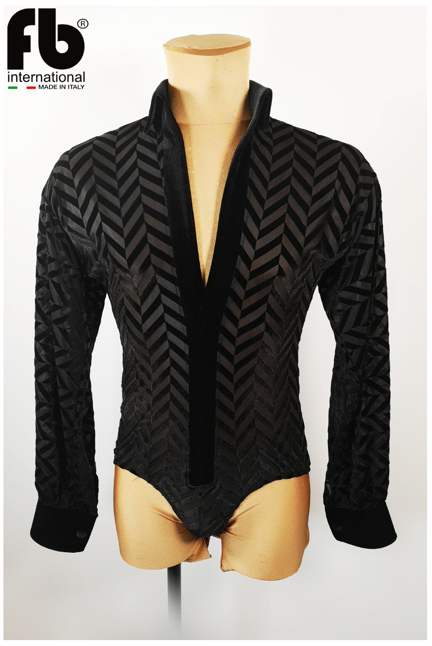 Men's shirt for latin dance made of barbed fabric with velvet collar and cuffs.