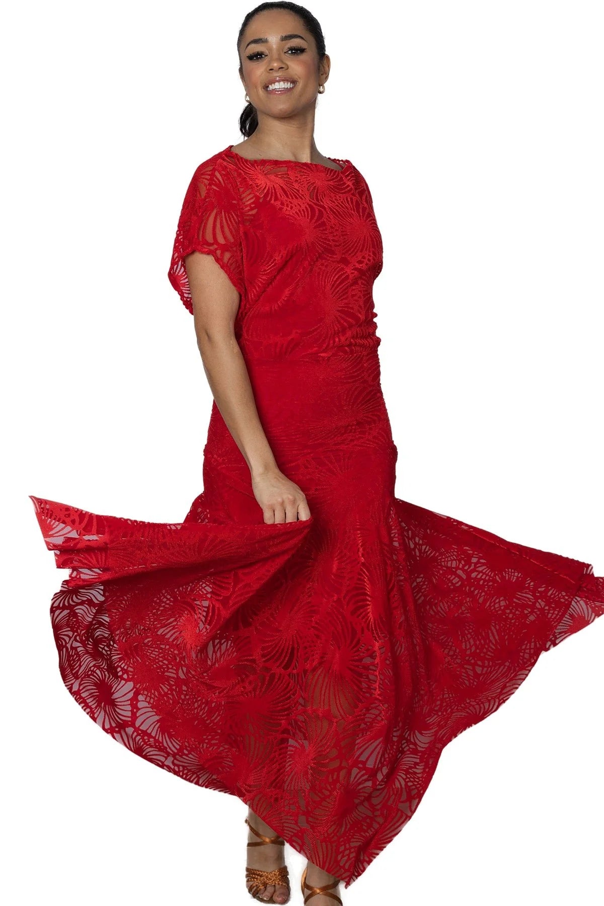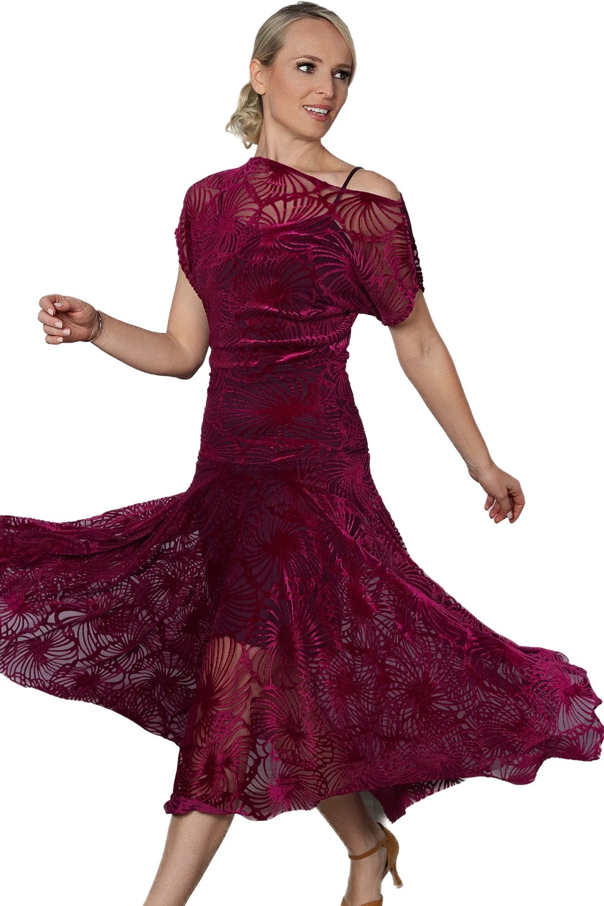 Women's American Smooth, International Standard Long Blouson Burnout Velvet Dress