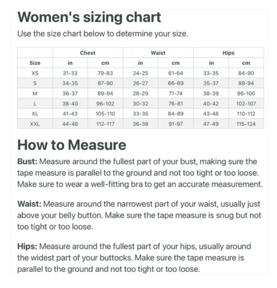 Review sizing recommendations for each specific product. Specify size during the checkout.