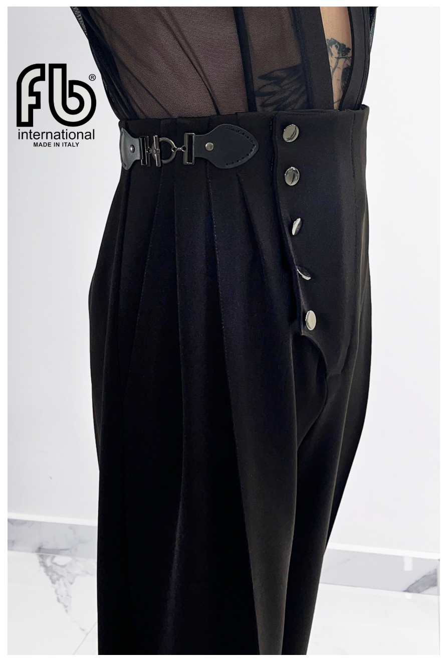 Fb international pants are created in our atelier by choosing the best fabrics and carefully studying our sewing techniques. Perfect in movement, soft on the hips and with excellent fit and comfort. The hand-sewn inner hook-and-eye fastening and inner flap ensure a lacing that is both perfectly snug to the body and restraining at the waist. The dancer's body will look nothing but perfect and slender on the dance floor!