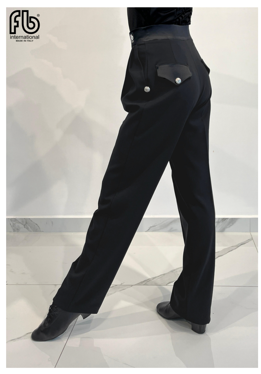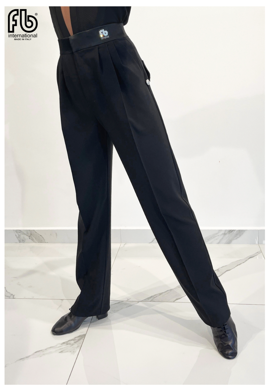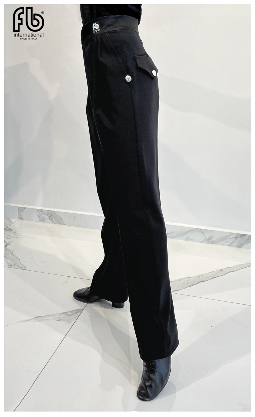 Fb international pants are created in our atelier by choosing the best fabrics and carefully studying our sewing techniques. Perfect in movement, soft on the hips and with excellent fit and comfort. The hand-sewn inner hook-and-eye fastening and inner flap ensure a lacing that is both perfectly snug to the body and restraining at the waist. The dancer's body will look nothing but perfect and slender on the dance floor!