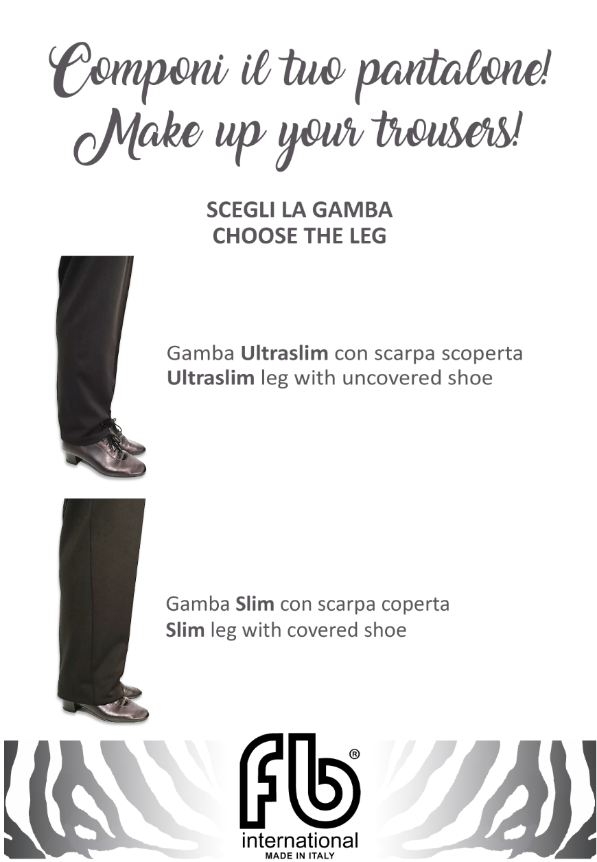 Fb international pants are created in our atelier by choosing the best fabrics and carefully studying our sewing techniques. Perfect in movement, soft on the hips and with excellent fit and comfort. The hand-sewn inner hook-and-eye fastening and inner flap ensure a lacing that is both perfectly snug to the body and restraining at the waist. The dancer's body will look nothing but perfect and slender on the dance floor!