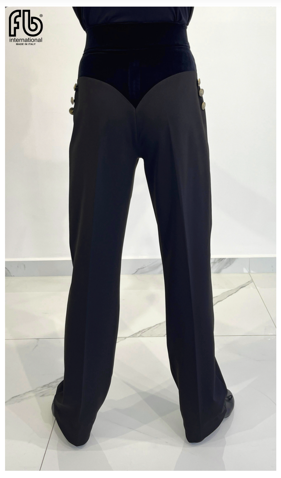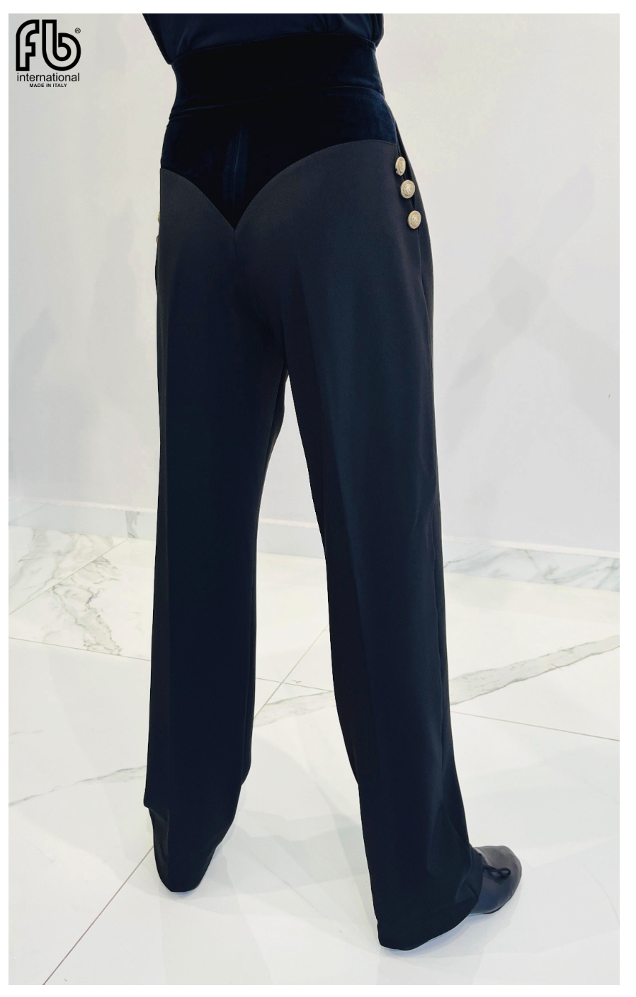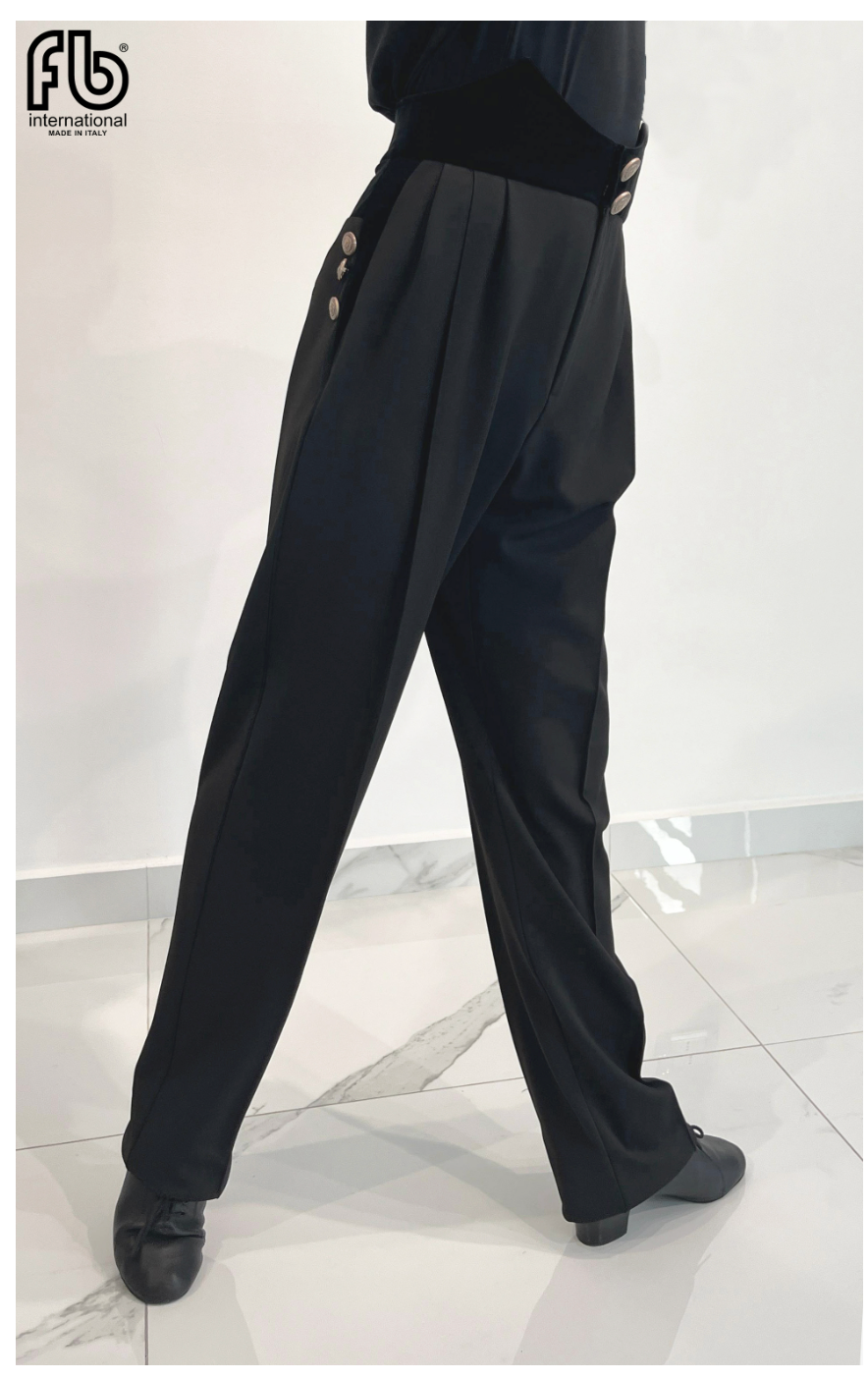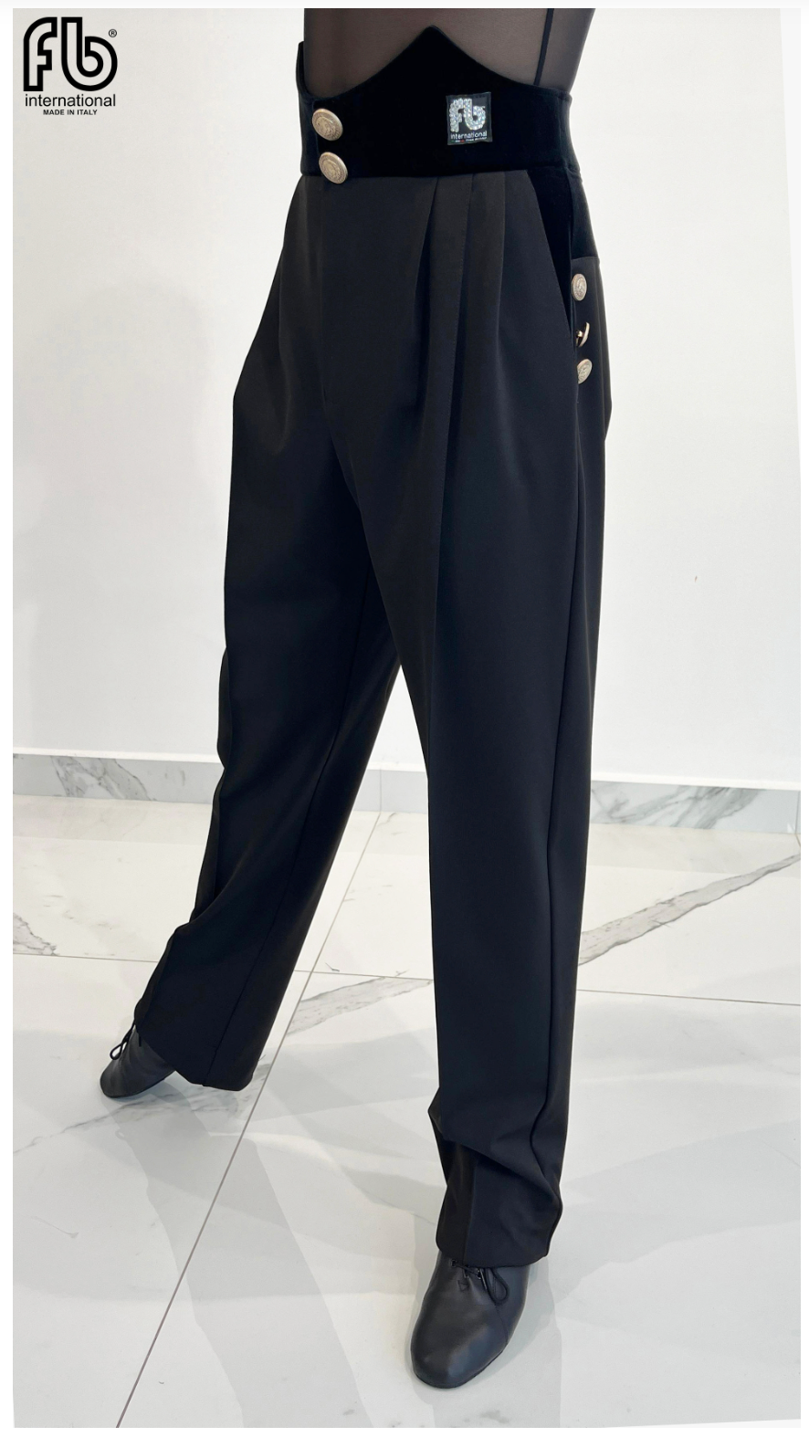 Fb international pants are created in our atelier by choosing the best fabrics and carefully studying our sewing techniques. Perfect in movement, soft on the hips and with excellent fit and comfort. The hand-sewn inner hook-and-eye fastening and inner flap ensure a lacing that is both perfectly snug to the body and restraining at the waist. The dancer's body will look nothing but perfect and slender on the dance floor!