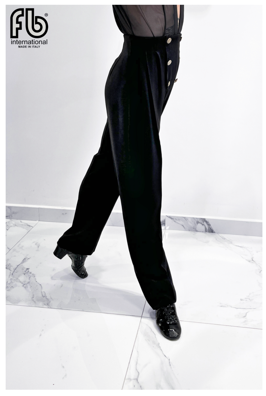 Fb international pants are created in our atelier by choosing the best fabrics and carefully studying our sewing techniques. Perfect in movement, soft on the hips and with excellent fit and comfort. The hand-sewn inner hook-and-eye fastening and inner flap ensure a lacing that is both perfectly snug to the body and restraining at the waist. The dancer's body will look nothing but perfect and slender on the dance floor!