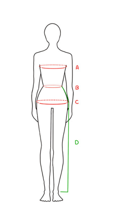 This dress fits well an S/M size, but be sure to check by following the measurements below.