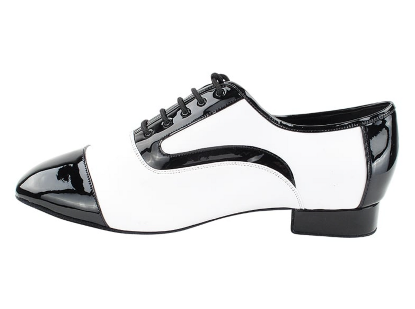Argentine Tango Dance Shoes for Men Black Patent & White Leather