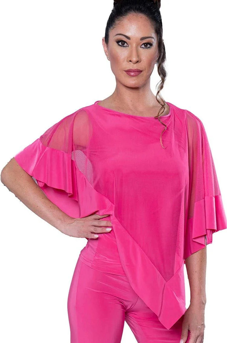 Women's Ballroom, Latin, American Rhythm, Tango, Salsa Diagonal Mesh Caplet Top