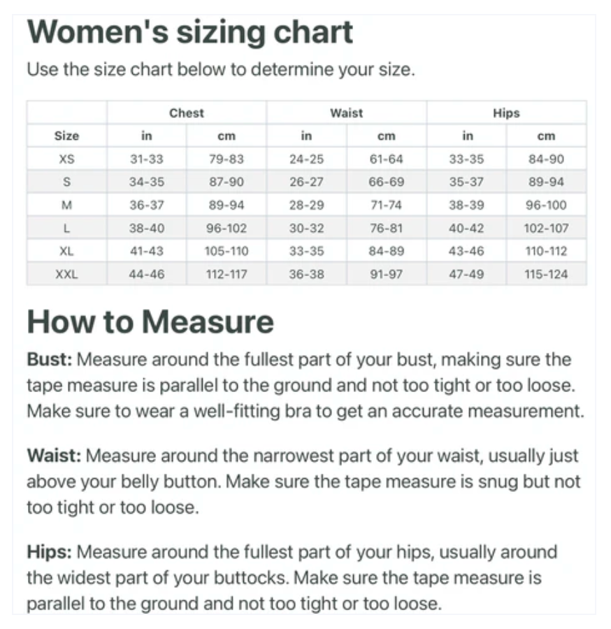 Review sizing recommendations for each specific product. Specify size during the checkout.