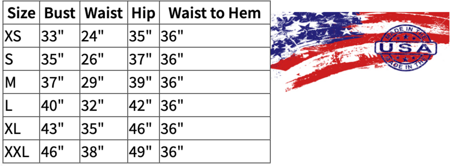 | Size | Bust | Waist | Hip | Waist to Hem |