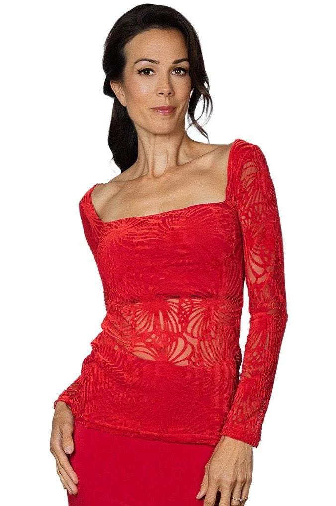 Women's Ballroom, Latin, American Rhythm, Tango, Square Neck Burnout Velvet Top