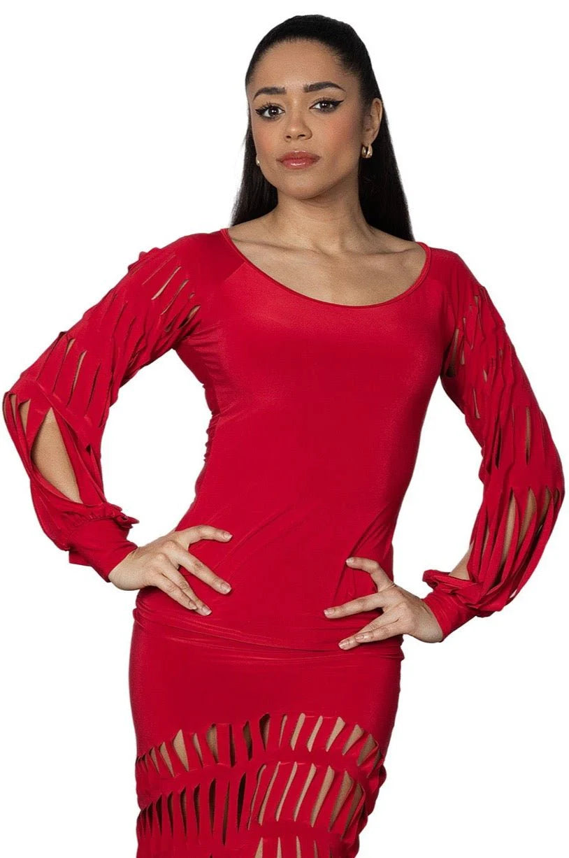Women's Ballroom, Latin, American Rhythm, Tango, Salsa Top with Band Cut Sleeves