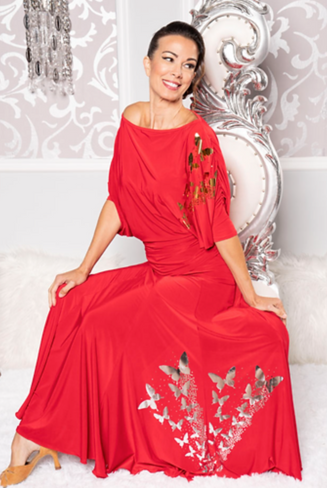 Regular price $119.00This loose fitting practice ballroom dance top features ruched dolman sleeves that flatter all body types. The moisture wicking material provides amazing comfort while dancing.