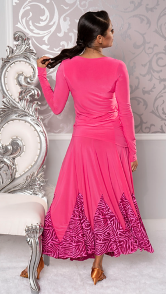 A full skirt with zig zag velvet hem inset provides amazing movement