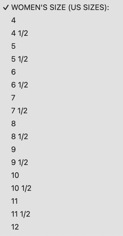Review sizing recommendations for each specific product. Specify size during the checkout.