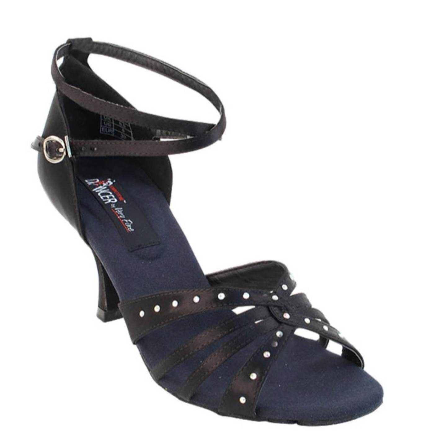 Cha Cha, Bachata, Samba, Hustle, Black Satin Women's Dance Shoes | Social Series